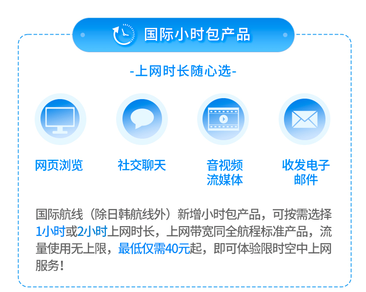 2. 空中互联网服务可支持浏览网页、即时通信、电邮收发、在线音视频等应用。