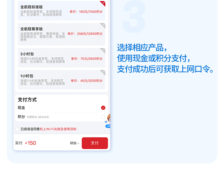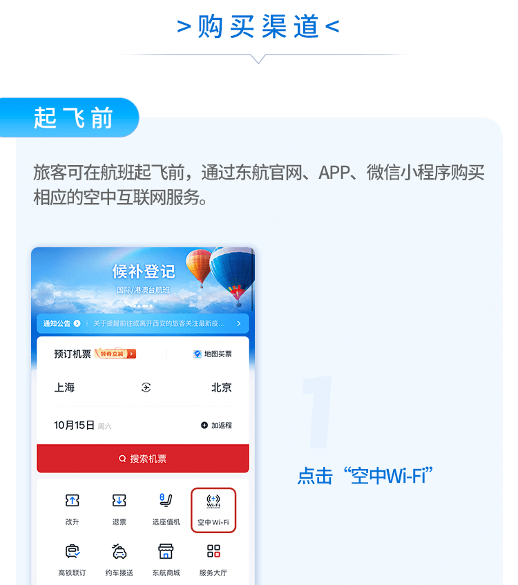 1. 通过东航官网、APP、微信小程序线上现金或积分购买的空中互联网服务有效期仅限为本次航班。